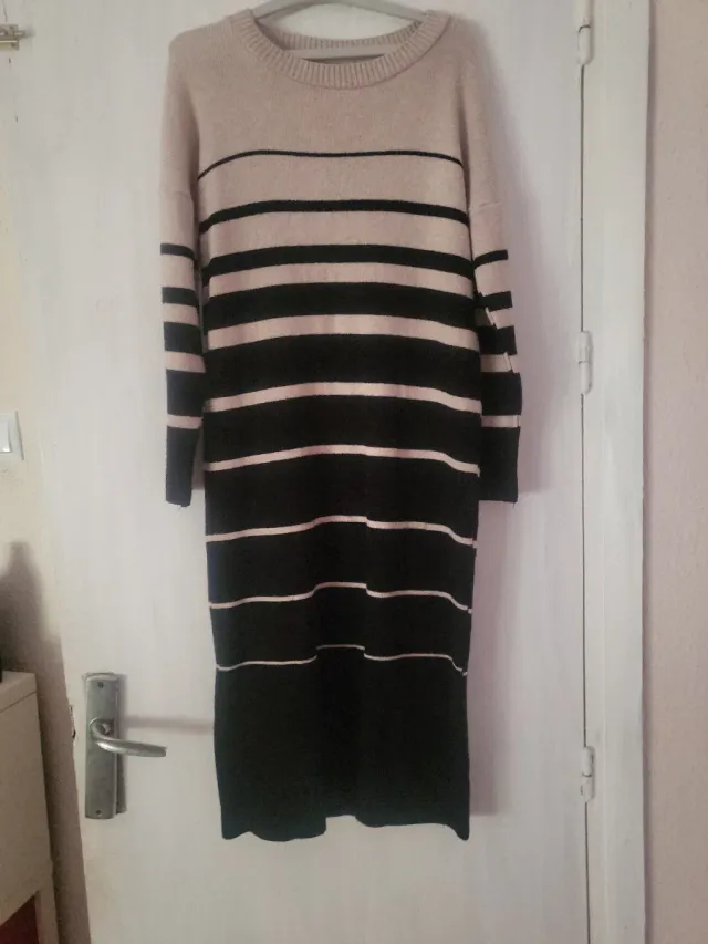 Vestido largo de rayas beige y negro