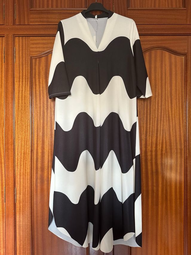 Vestido largo estampado blanco y negro