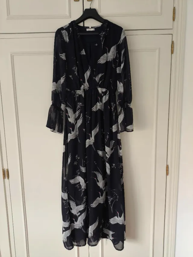 Vestido largo estampado grullas