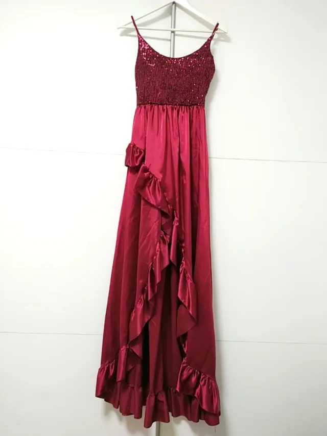 Vestido largo fiesta lentejuelas volantes