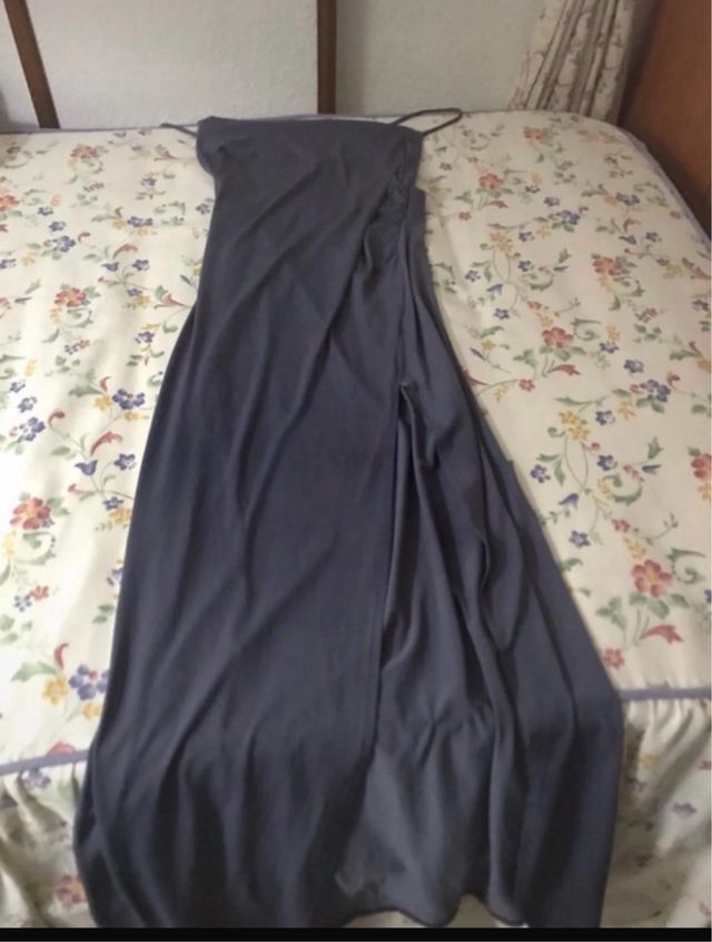 Vestido largo gris con abertura