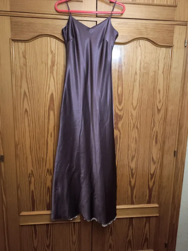 Vestido largo lencero reversible dorado y marrón