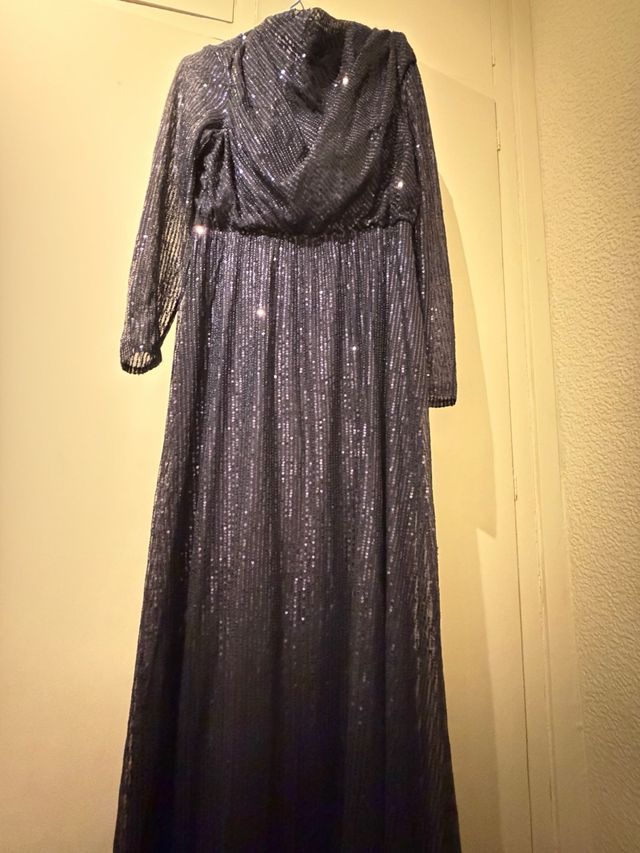 Vestido largo lentejuelas azul y plata