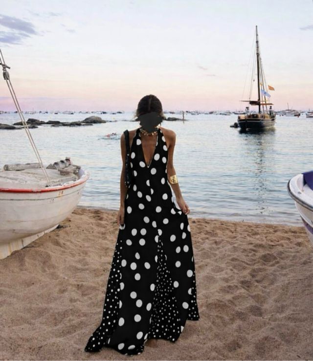 Vestido largo lunares invitada Feria