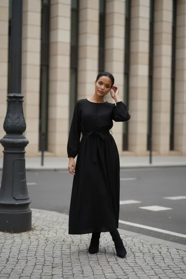 Vestido largo negro con cinturón