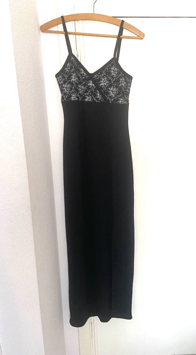 Vestido largo negro y plateado
