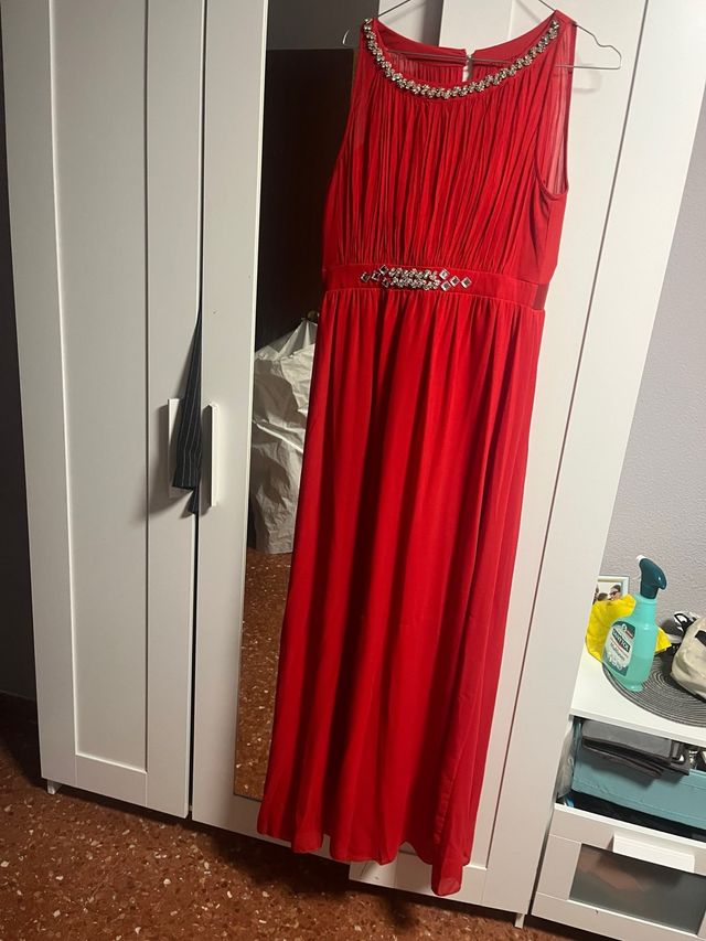 Vestido largo rojo con pedrería