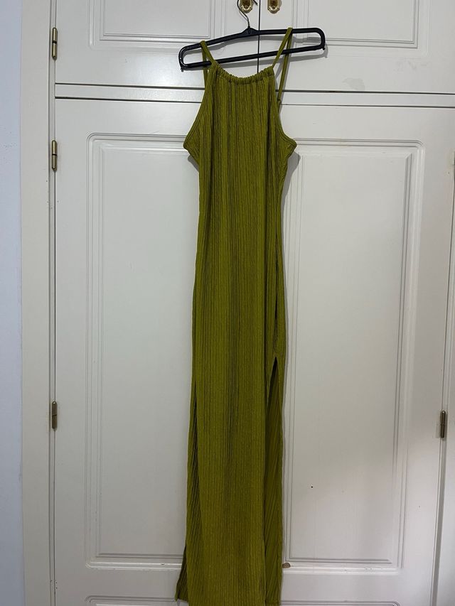 Vestido largo verde con abertura