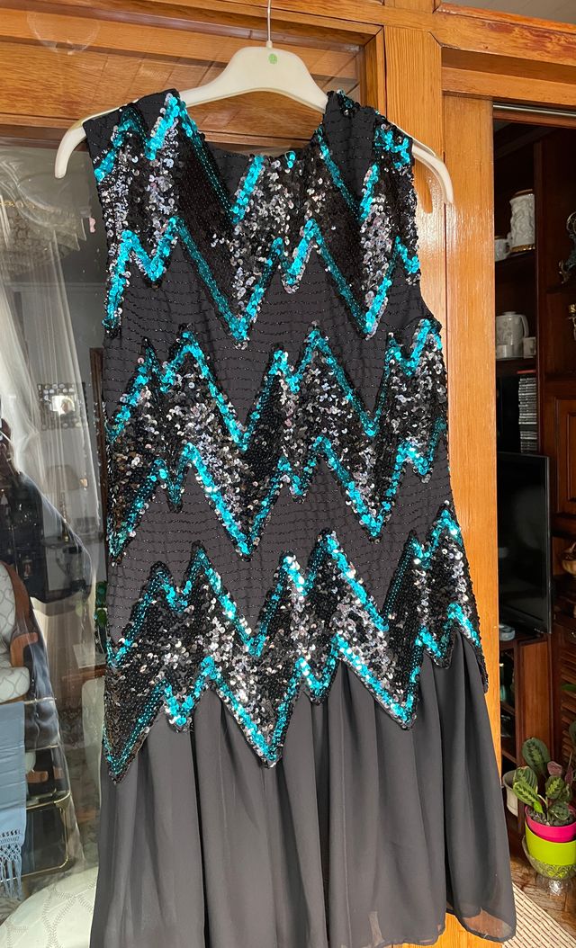 Vestido lentejuelas negro y turquesa