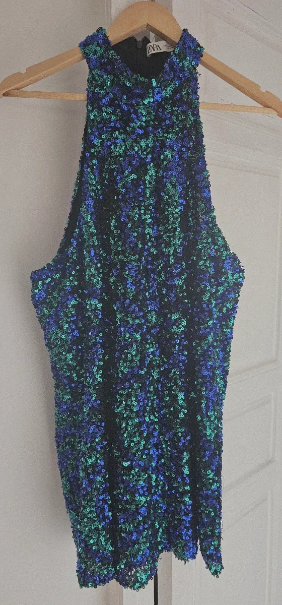 Vestido lentejuelas Zara azul y verde corto