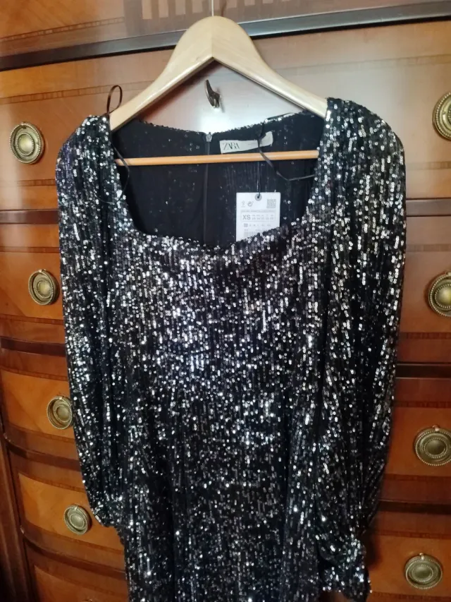 Vestido lentejuelas Zara fiesta negro/plata XS