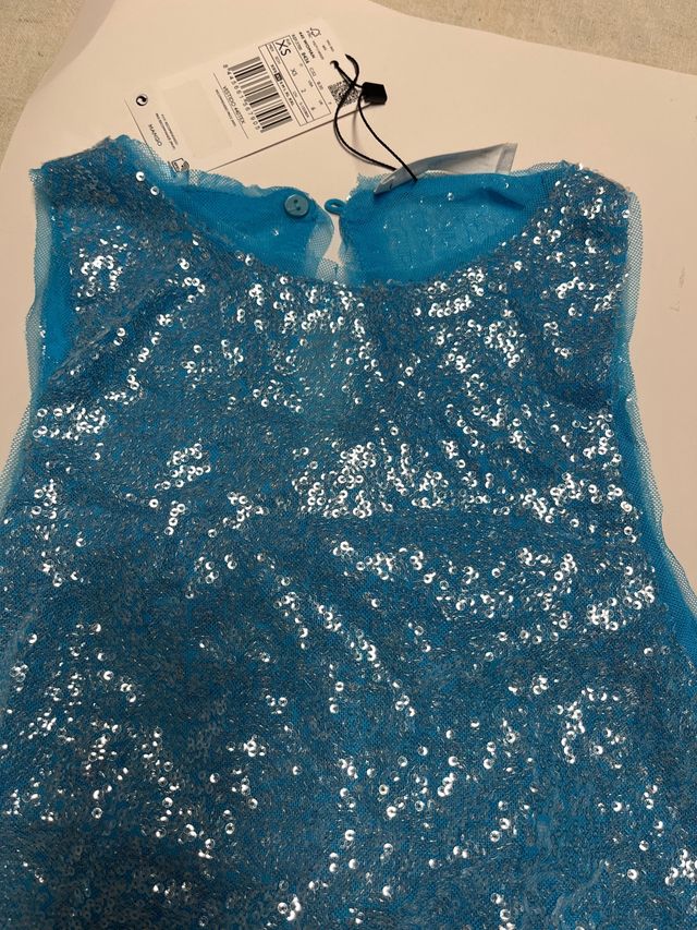 Vestido Mango lentejuelas turquesa Talla XS