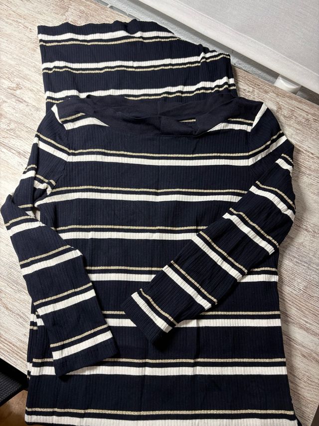 Vestido Massimo Dutti Rayas Negro y Dorado