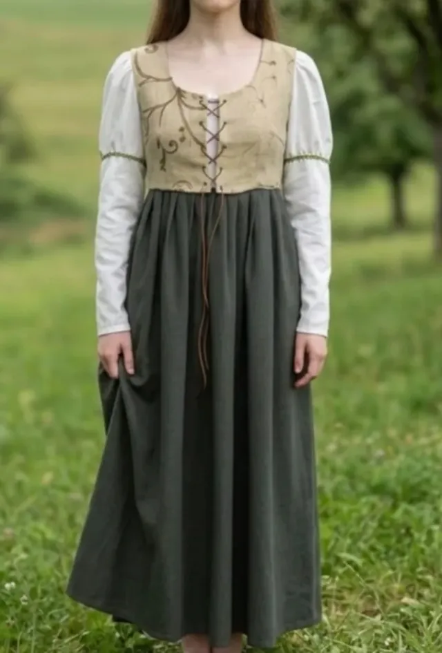 Vestido medieval beige y verde