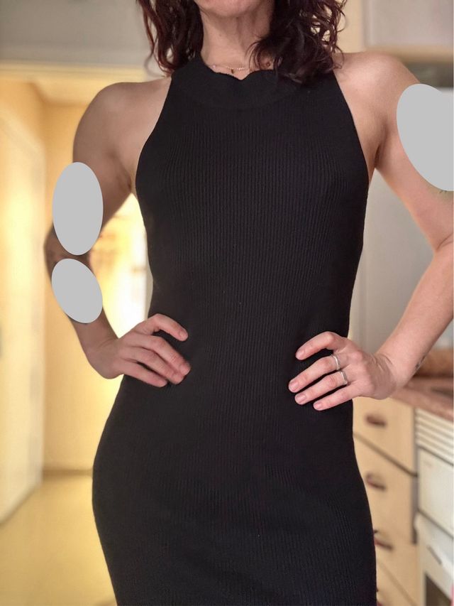 Vestido midi de punto canalé negro talla M