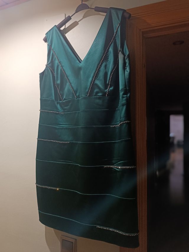 Vestido midi fiesta ( chaqueta- Verde esmeralda)