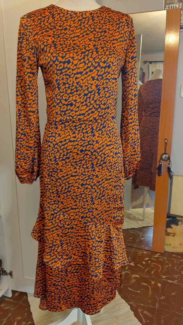 Vestido Midi Leopardo Naranja y Azul