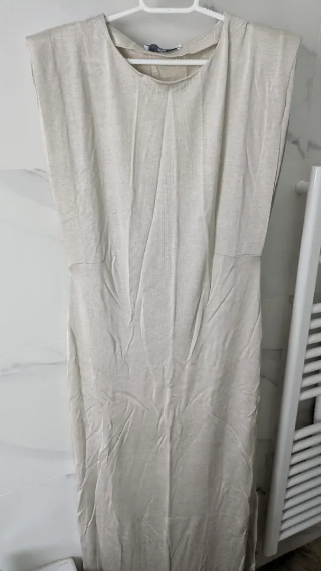 Vestido midi punto fino beige Mango con aberturas