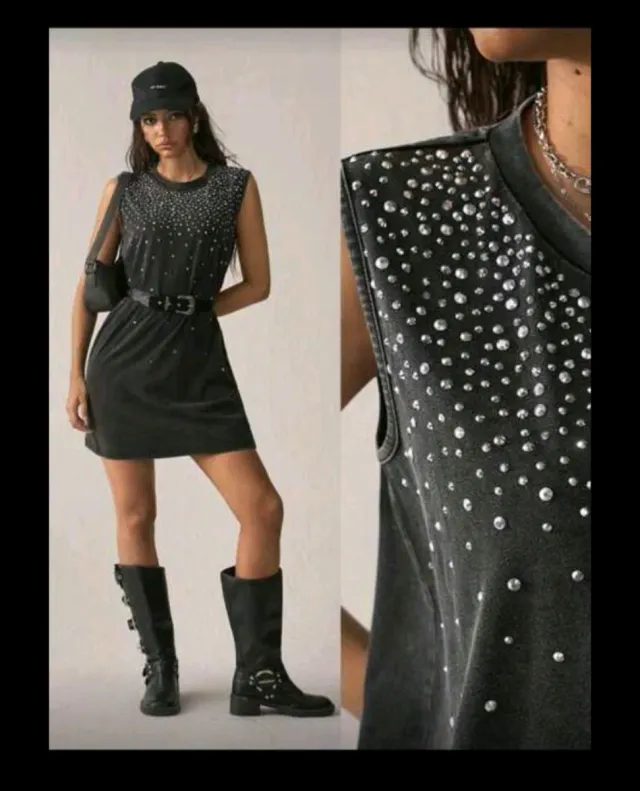 Vestido mini sin mangas con pedrería