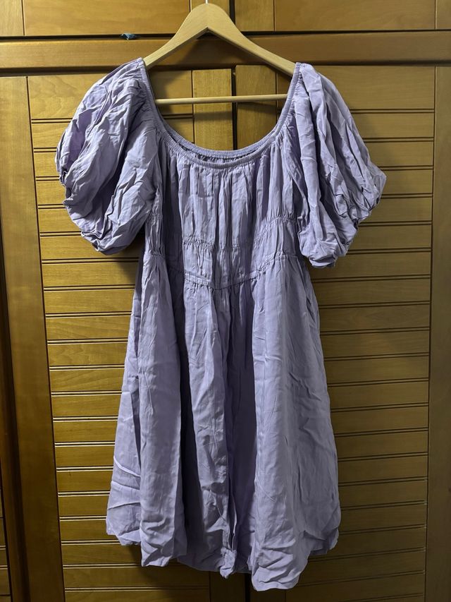 Vestido morado con mangas abullonadas