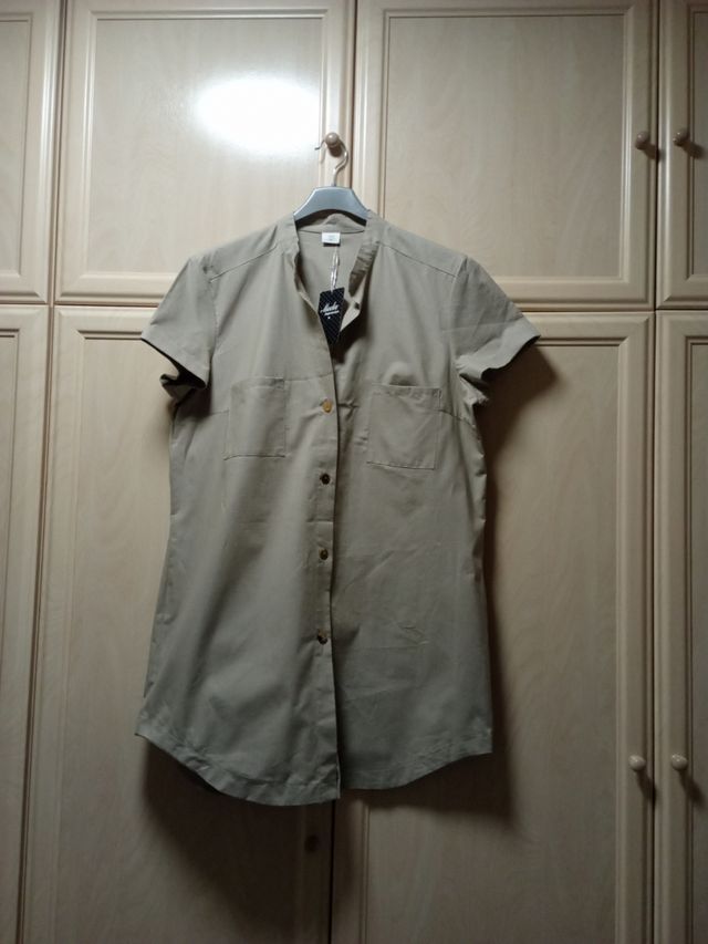 Hecho en España , lleva cuello de tirilla y va abotonado delante , lleva dos bolsillos de parche , tiene un modelo bonito , es suelto , pero se puede poner con cinturón HAGO ENVÍOS
