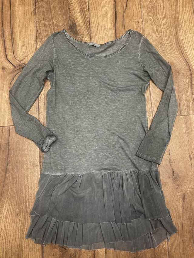 Vestido mujer manga larga verde gris talla M