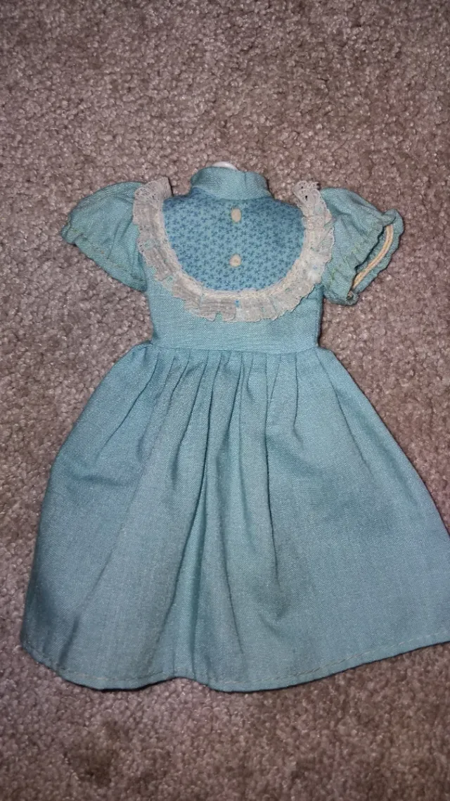 Detalles del productoVestido azul para muñeca Lesly, con detalles de encaje y estampado floral.