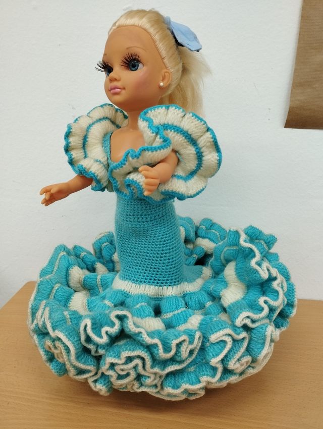 Detalles del productoPrecioso traje de flamenca de crochet hecho a mano para muñeca Nancy de los años 70. Traje de colección Medidas del producto