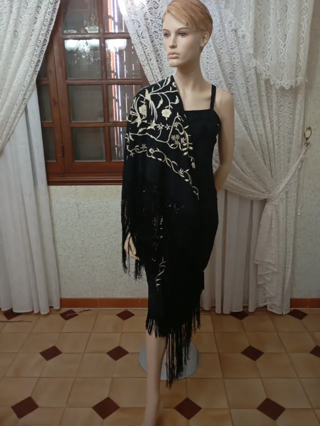 Vestido negro bordado oro talla única