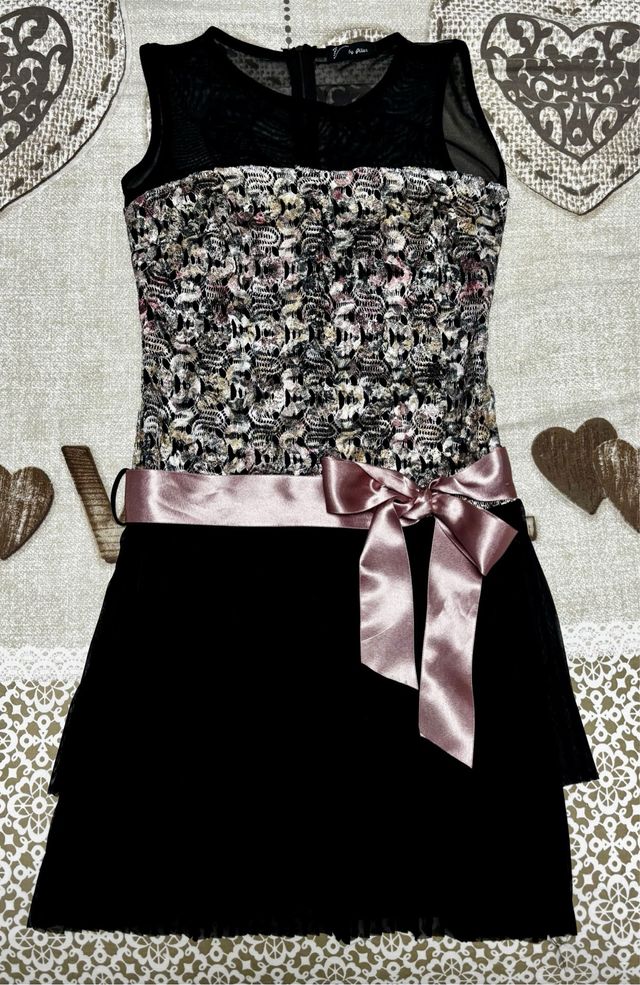 Vestido negro con detalles rosas