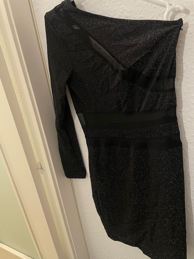 Vestido negro corto hombro caído manga larga