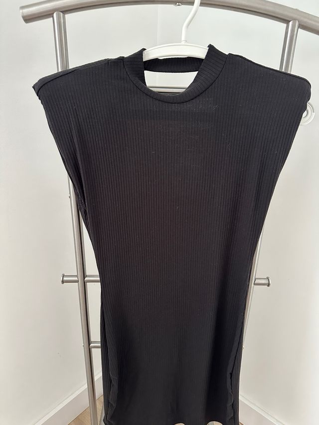 Vestido negro de canalé sin mangas