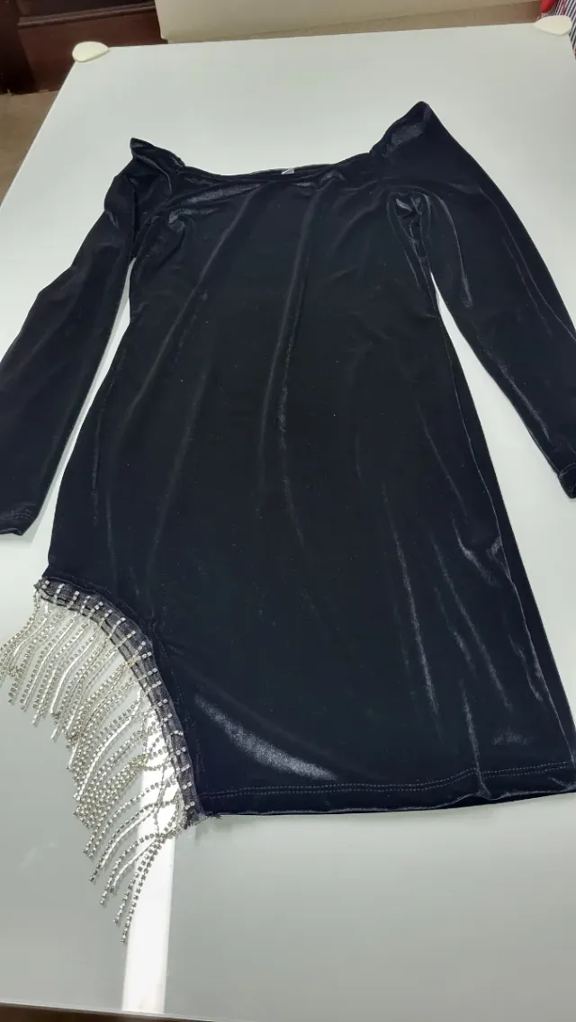 Vestido negro de fiesta, asimétrico con pedrería