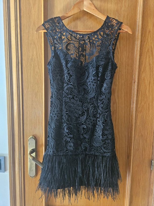 Vestido negro encaje y plumas. Nuevo con etiqueta.