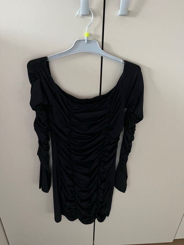 Vestido negro fiesta drapeado