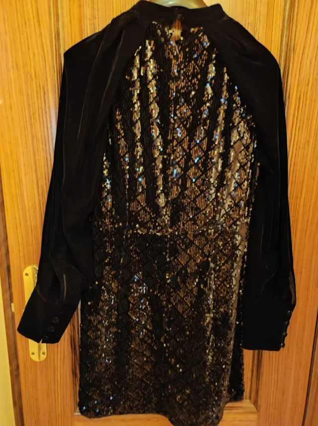 Vestido negro lentejuelas y terciopelo
