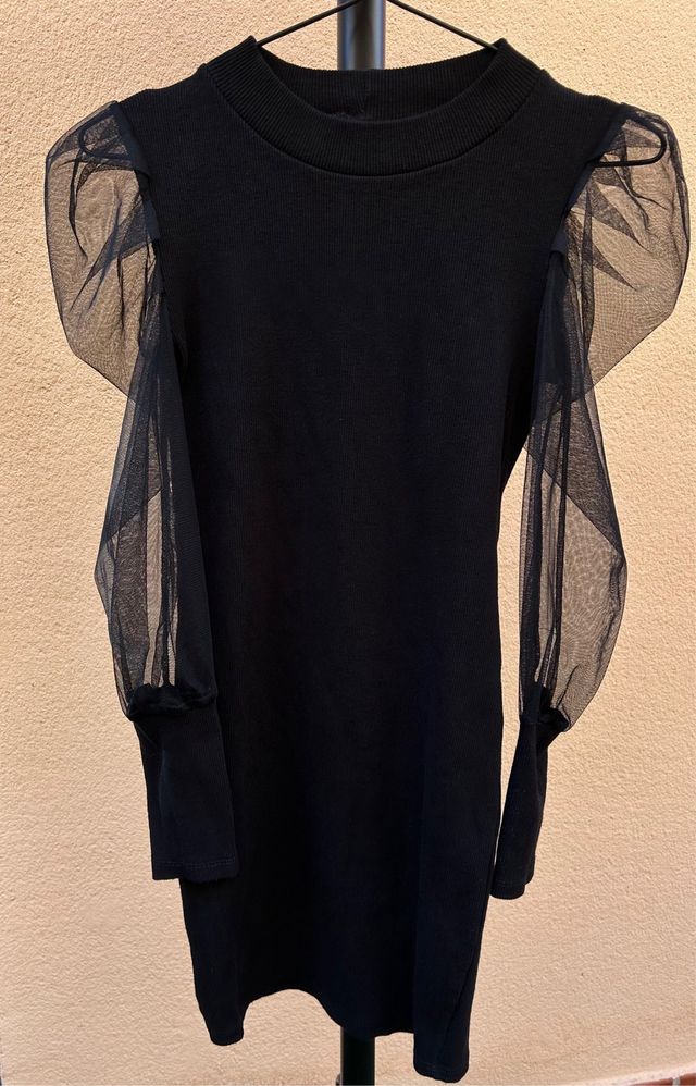 Vestido negro manga abullonada