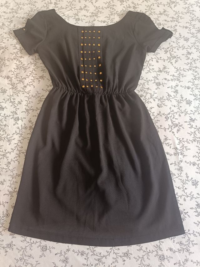 Vestido negro mini tachuelas doradas