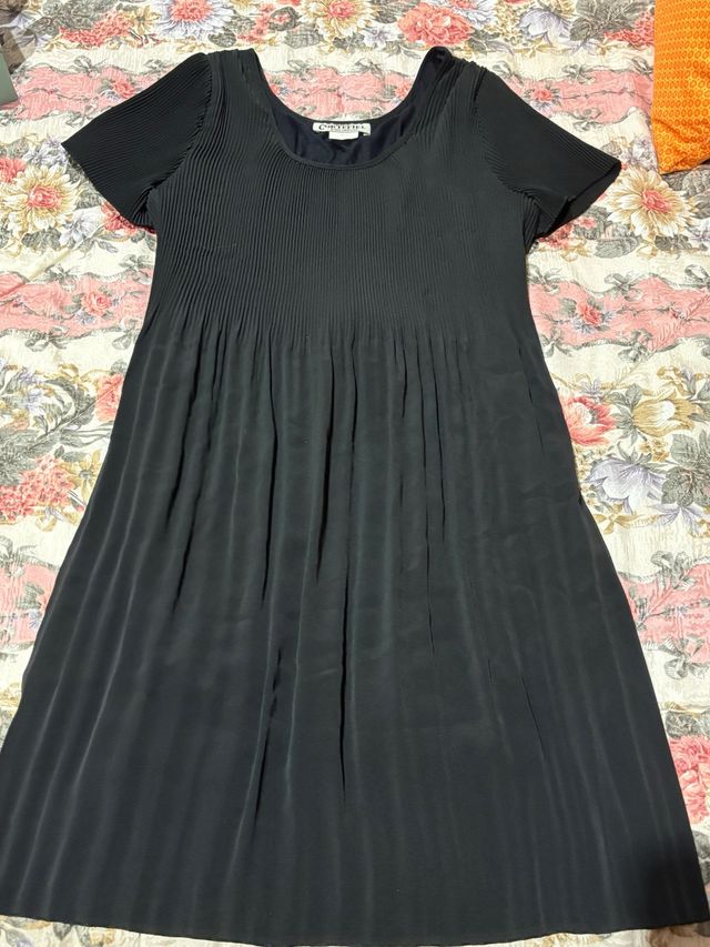 Vestido negro plisado vintage