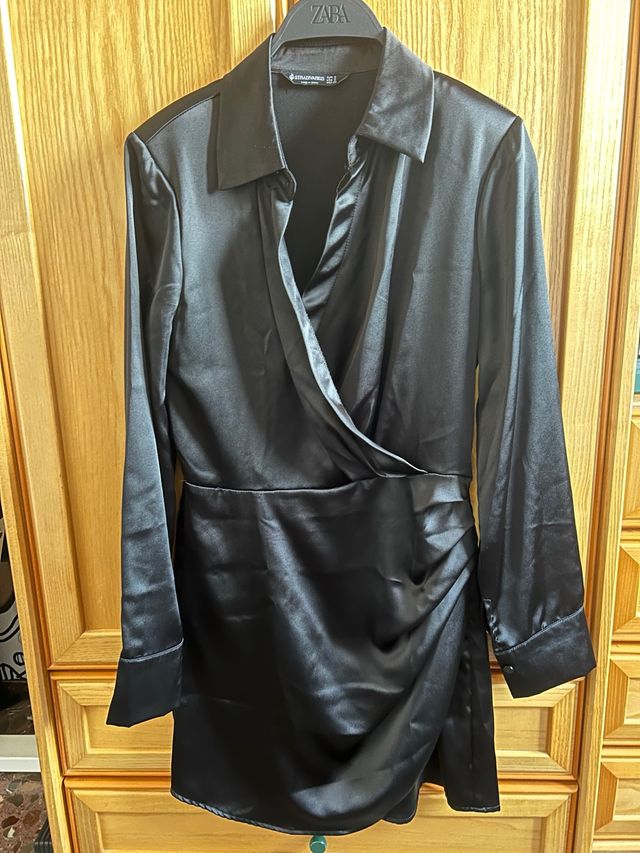 Vestido negro satinado Stradivarius