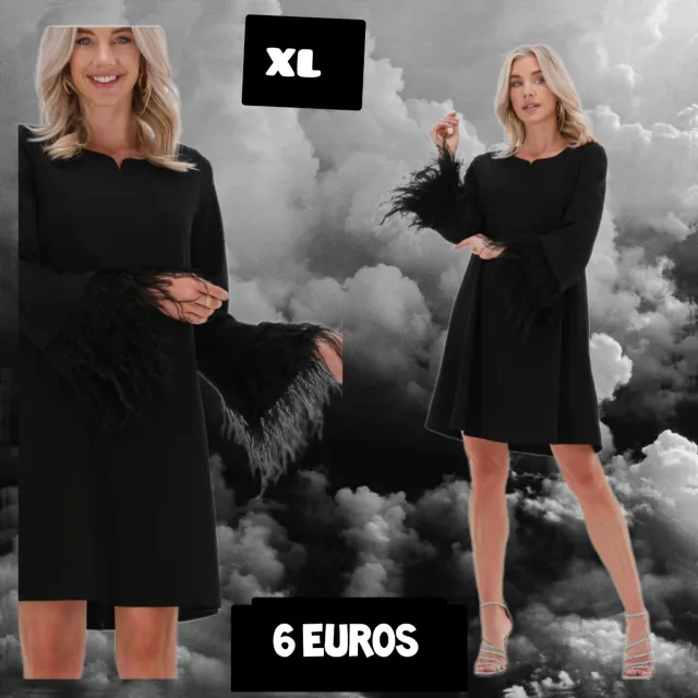 Vestido Negro XL con Plumas