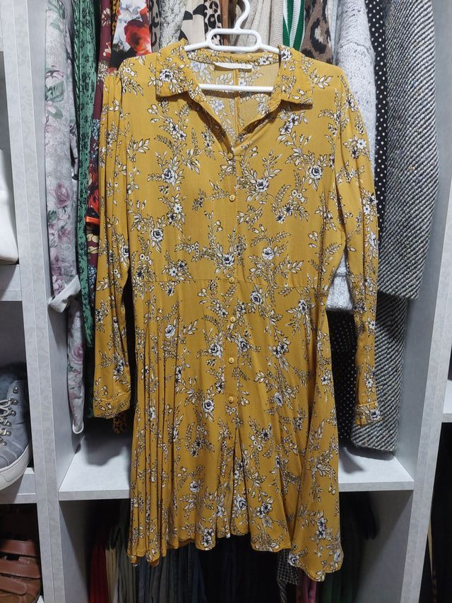 Vestido negro y mostaza con estampado floral