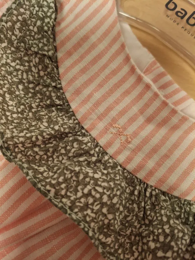 Detalles del productoVestido de niña de 24 meses con un diseño de rayas rosas y blancas y un estampado floral en tonos verdes y blancos.