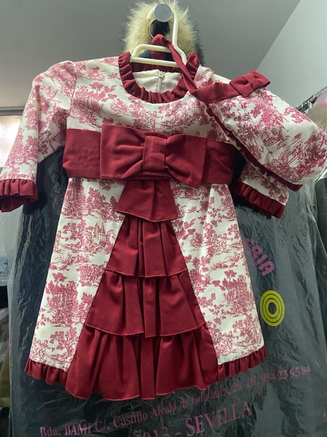 Detalles del productoConjunto de vestido y capota para niña, ideal para ceremonias.