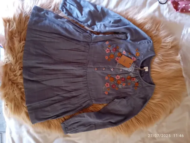 Vestido de niña de la marca El Corte Inglés. - Talla 6-7 años. - Diseño con flores bordadas. - Color azul.