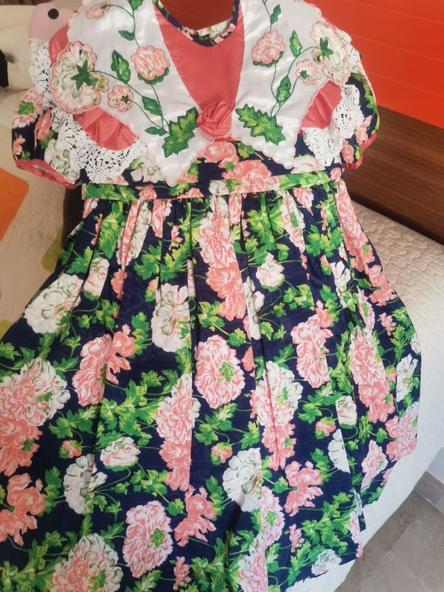 Detalles del productoPrecioso vestido para niña, ideal para ocasiones especiales. Es de color azul marino con estampado floral en tonos rosas y verdes. Luce delicado y elegante.