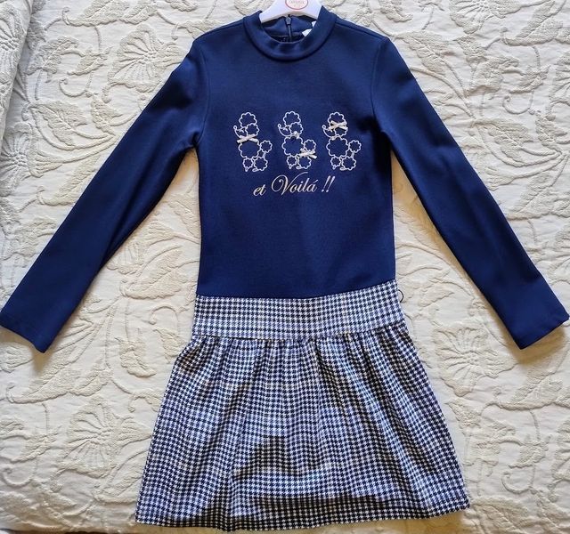 Vestido niña invierno azul con poodles