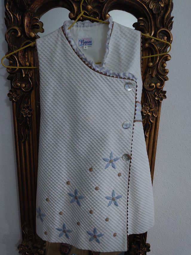 Detalles del productoPrecioso vestido para niña de la marca NAXOS, talla 5. Es de color blanco roto, con textura acanalada y detalles bordados. Luce impecable.