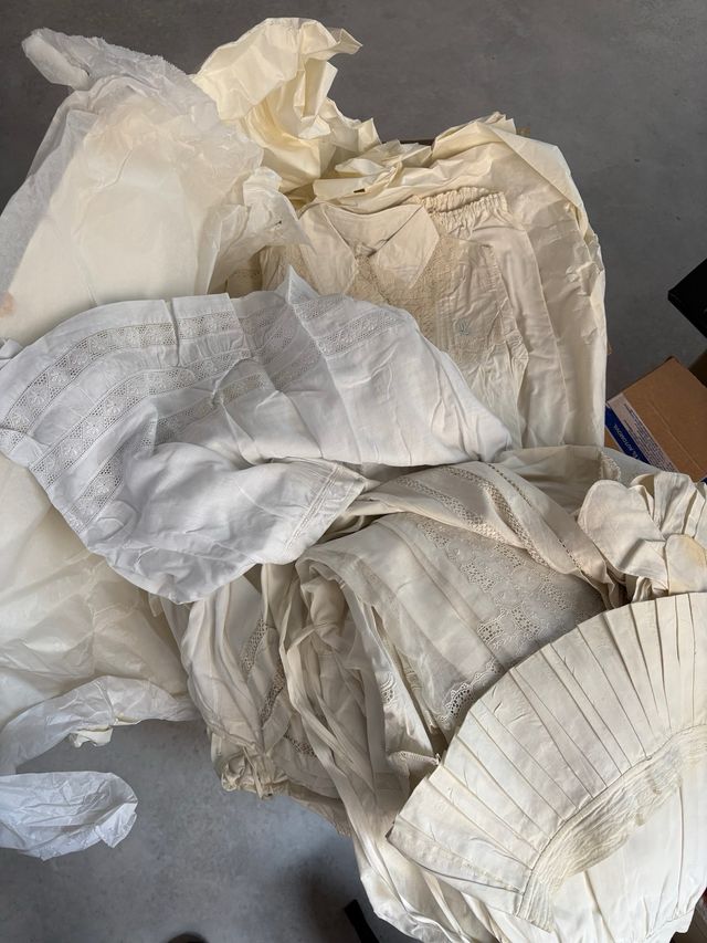 vestido novia aprox talla s cosido a mano de primera calidad. esta para blanquear por el paso de los años pero en perfectas condiciones.