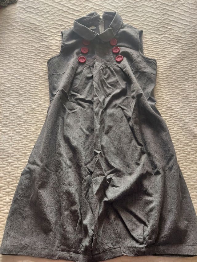 Detalles del productoVestido premamá muy juvenil. Talla 3 de la marca SKUNKFUNK (similar a una M/L). Hecho con material sostenible. Color gris con botones debajo del cuello para darle un toque de color y diferencia. Se puede complementar con un jersey debajo. En la parte inferior de la barriga, la tela tiene unas pinzas para que pueda caber la barriga según vaya aumentando de tamaño.